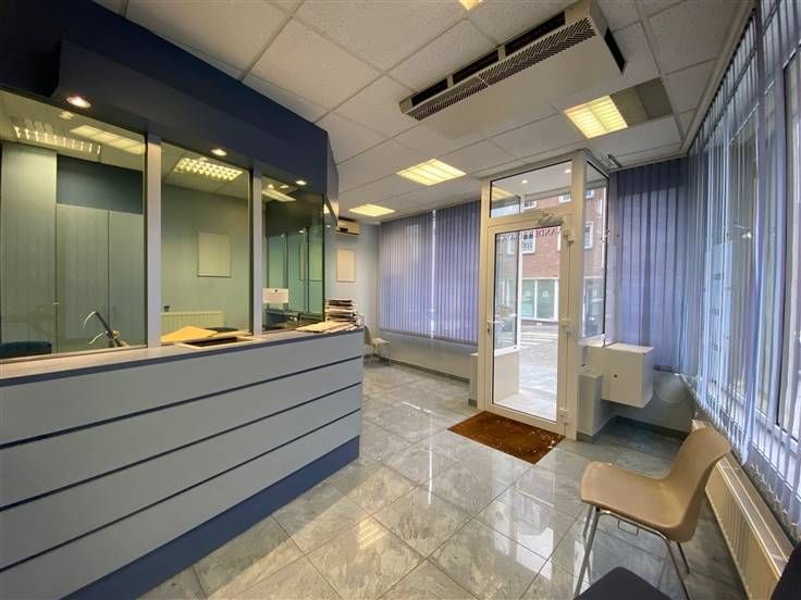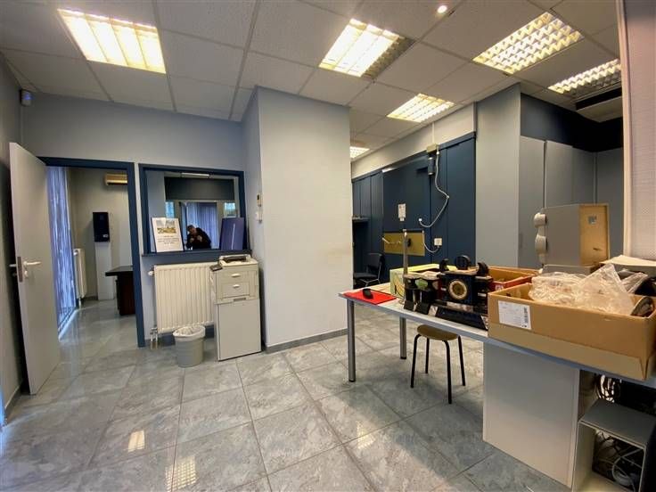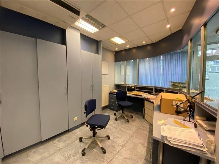 Ce bien, préalablement utilisé pour des bureaux de banque et assurance, comprend une pièce d’accueil (+/-19 m²), des bureaux avec placards intégrés, un bureau individuel de 10,55 m² à l’arrière, une cuisine semi-équipée de 7,55 m² et des sanitaires.