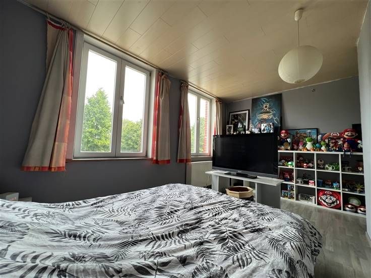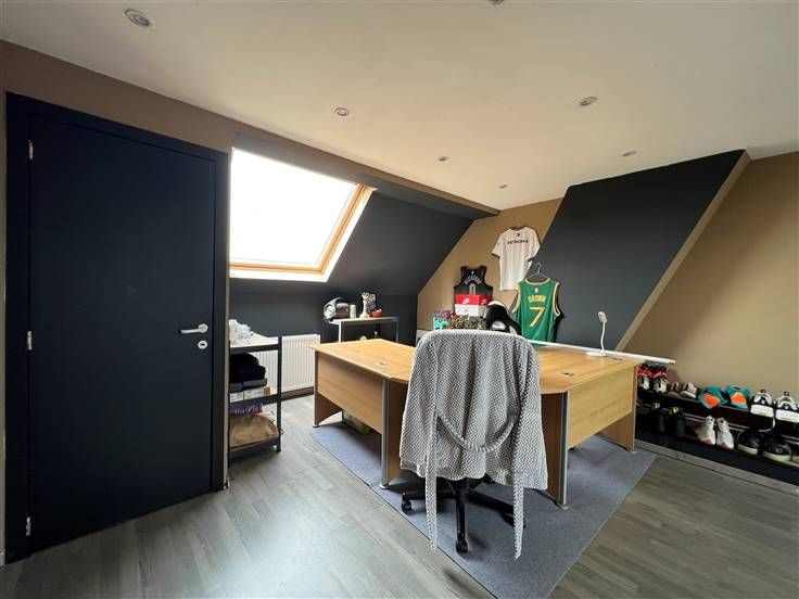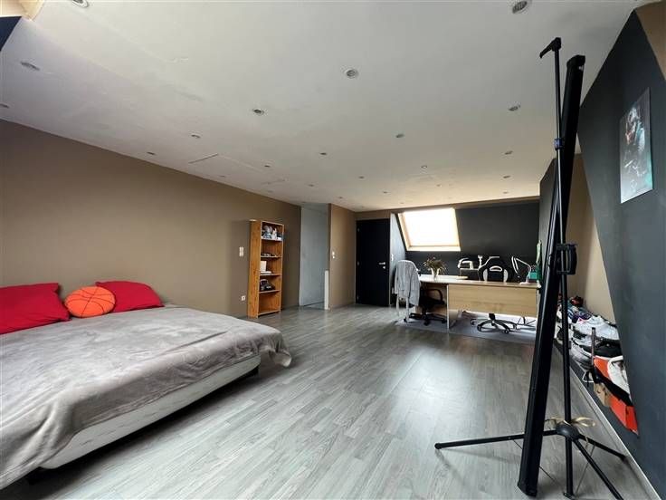 Op de tweede verdieping: een grote slaapkamer (+/- 39m²) met aparte WC.