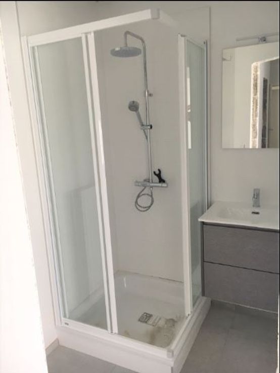 Belle pièce à vivre, cuisine ouverte super équipée (vitro, four, hotte, frigo et LV), 1 chambre avec parquets, salle de douche + wc et toute petite buanderie.