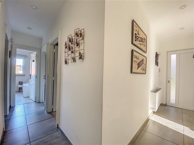 Hall d'entrée, living en L, cuisine équipée, buanderie, hall de nuit, WC séparé, deux chambres, dressing (ou petite chambre), salle de douche, grenier de rangement.