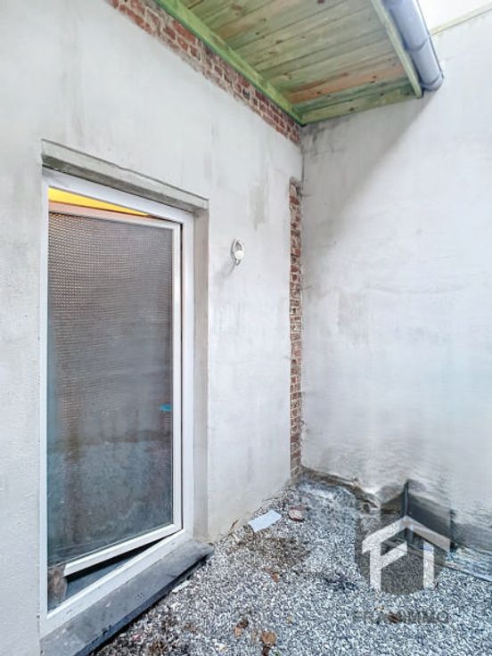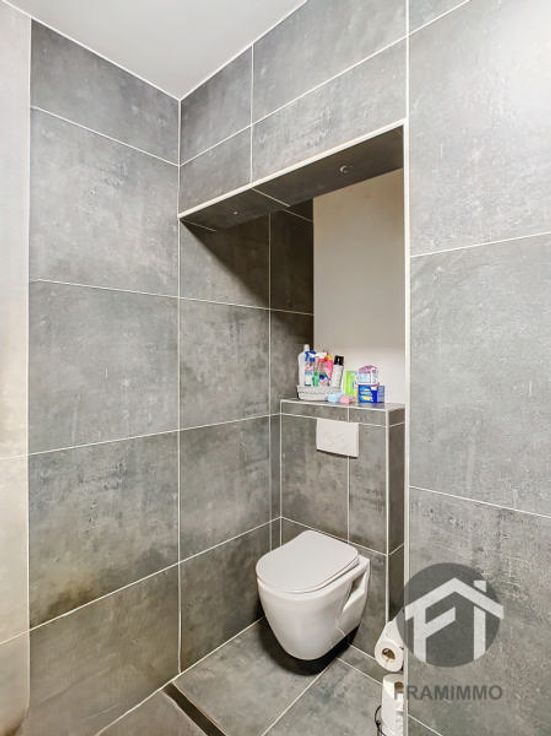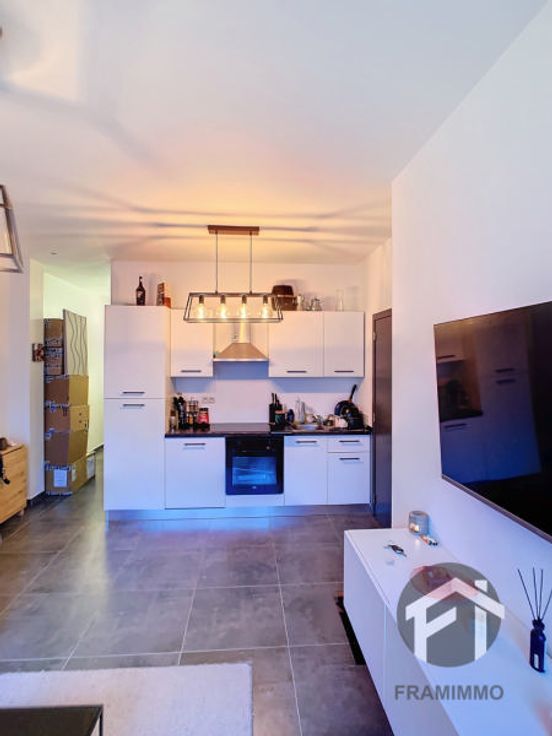 Appartement une chambre avec une terrasse, une cuisine équipée ouverte sur un séjour lumineux, une salle de douche moderne et un WC suspendu. Local technique commun. Loyer 615€ + 40€ (15€ entretien chaudiére + 25€ entretien commun)
