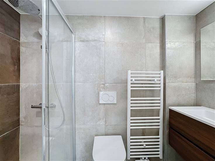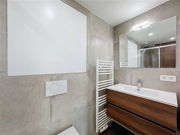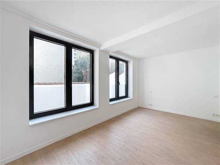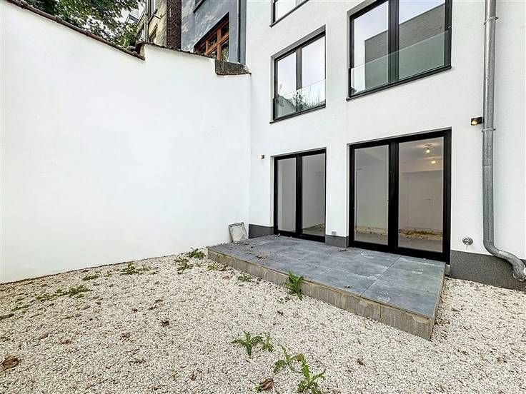 Quartier Montgomery - Schitterend duplex appartement met 2 slaapkamers van +/- 90m². Op de begane grond/5 verdiepingen: Een lichte woon/eetkamer van +/- 37m² uitgevend op een volledig ingerichte open keuken (koelkast met vriesvak, oven, kookplaat, afzuigkap en vaatwasser), een bijkeuken met ruimte voor een wasmachine, een gastentoilet, een slaapkamer van +/- 15m² met een aangrenzende doucheruimte. Op de benedenverdieping, een nachthal, een apart toilet, een ruime slaapkamer van +/- 18m² uitgevend op een tuin van +/- 25m², douchekamer. Voorzieningen en comfort: dubbele beglazing, videofoon, thermostaat, kelder, boiler met dubbele doorstroming. Bijkomende kosten: € 100/maand (onderhoud en elektriciteit voor gemeenschappelijke ruimtes). Beschikbaar per direct.