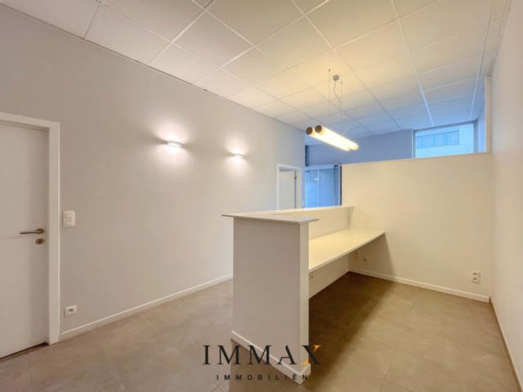 Dit handelspand omvat volgende indeling: inkomhal met balie voor 2 personen - 2 kantoorruimtes - toilet - privatieve trap naar ondergrondse verdieping met aansluitend verwarmde kelderberging/opslagruimte.