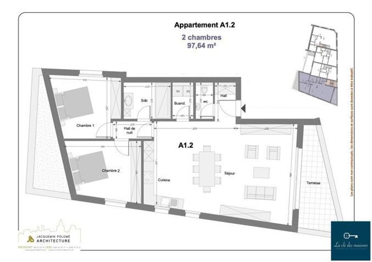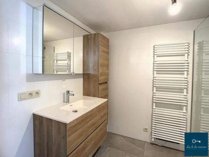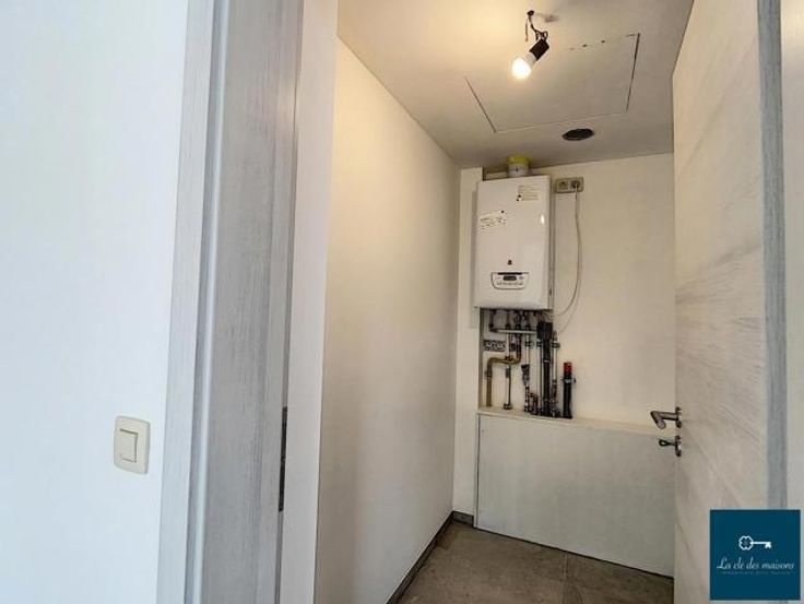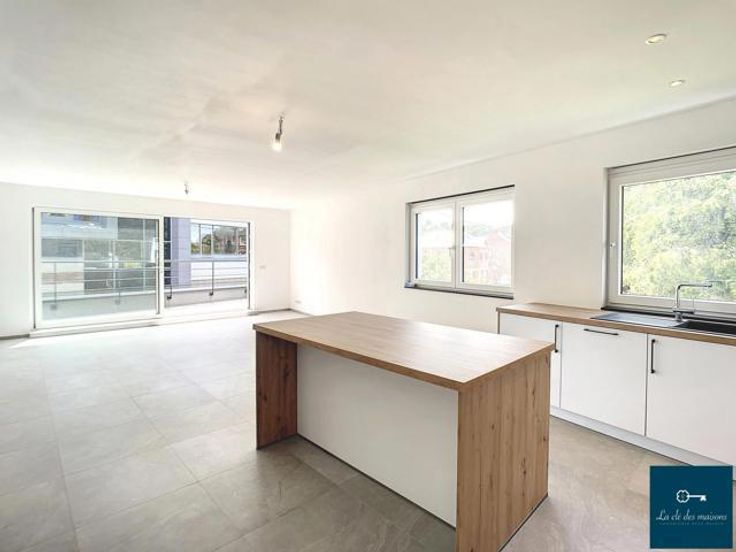 La clé des maisons vous propose, à la location, ce magnifique appartement 2 chambres avec terrasse dans la résidence "Alexandre Duvivier". Il se situe au 1er étage et se compose comme suit : hall d'entrée, wc, buanderie, cuisine équipée ouverte sur le séjour, hall de nuit, 2 ch., sdd et une jolie terrasse orientée au sud. Il bénéficie également d'une cave privative (n°2) et de l'emplacement de parking couvert n°3 . PEB B : 124 kwh/m2/an (code unique 20200903501797) : châssis PVC DV (thermique et acoustique), chauffage par le sol (gaz de ville), chaudière à condensation individuelle. VMC simple flux améliorée. Porte d'entrée blindée, sécurisée et coupe-feu, mini-alarme incendie et adoucisseur d'eau collectifs. L'appartement est équipé de lampadaires et de barres pour les tentures. Bail de 1 an renouvelable : loyer mensuel de 825€ + 50€ de provision de charges communes (entretien de la mini-alarme, de l'adoucisseur d'eau + eau et électricité des communs). Compteurs individuels pour les parties privatives. Etat des lieux à frais partagés entre le bailleur et le preneur, garantie locative à constituer chez Korfine de 2 mois et assurance incendie à souscrire. Libre à partir du 01/02/2025. L'immeuble se situe à proximité immédiate du centre et de toutes ses commodités. Infos et visites : Anne 0496/12 64 40 ou info@lacledesmaisons.be