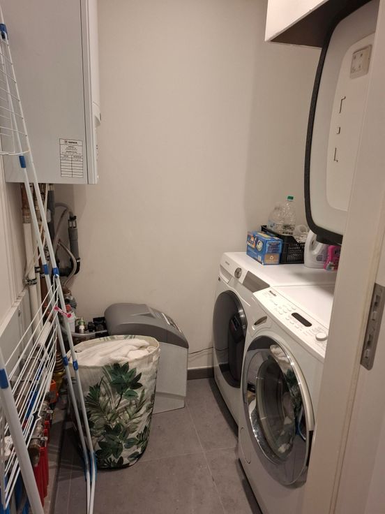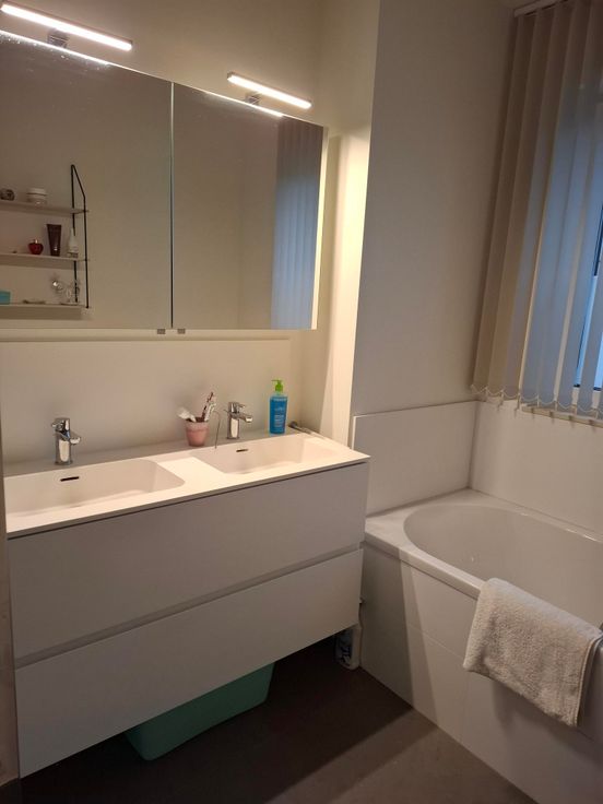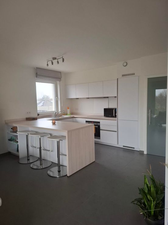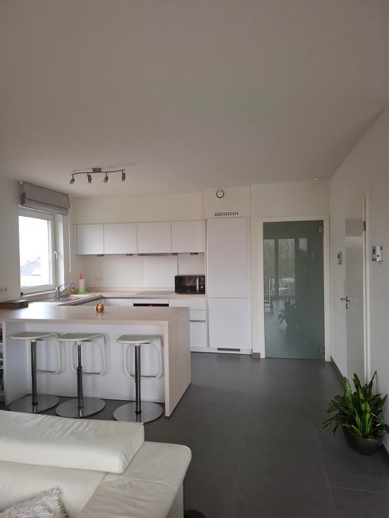 Indeling: zonnige ruime woonkamer met open keuken voorzien van alle comfort met extra ruime berging. Centrale gang met apart toilet en nog een extra wasruimte. Achteraan 2 lichtrijke slaapkamers, badkamer met dubbel lavabomeubel, bad en regendouche.