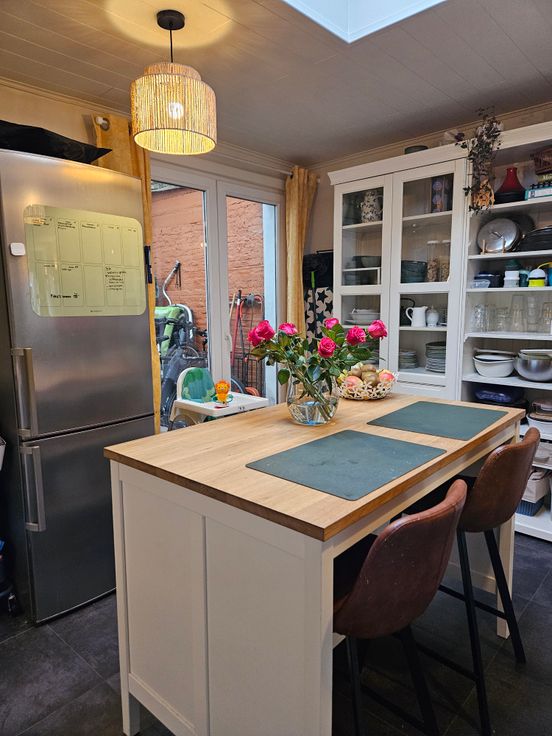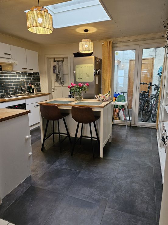 Onze charmante rijwoning, gelegen in een rustig doodlopend straatje, is ideaal voor wie op zoek is naar een gezellige thuis op een uitstekende locatie. De woning beschikt over een zonnige zuidgerichte voortuin, een ideale plek om te genieten van een lunch in het middagzonnetje. Binnenkomend vind je op het gelijkvloers een ruime woonkamer met veel lichtinval. Aansluitend vind je een keuken die perfect is voor wie houdt van koken en gezelligheid. Naast de keuken bevinden zich een handige bijkeuken en een gastentoilet. Vanuit de bijkeuken krijg je toegang tot een buitenkoertje, waar voldoende plaats is om meerdere fietsen te stallen.