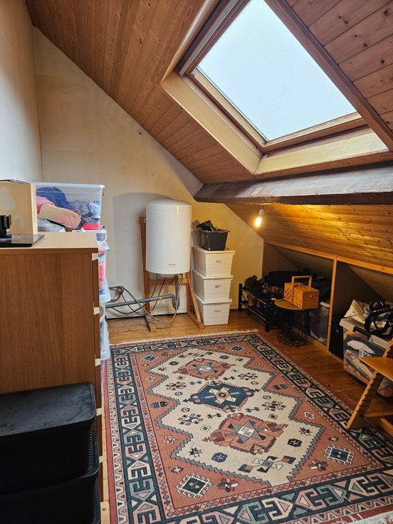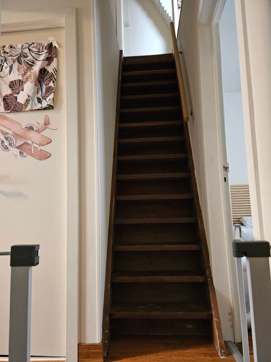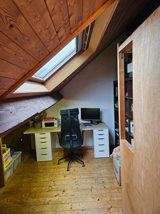 Op de eerste verdieping bevinden zich twee slaapkamers en een badkamer die uitgerust is met een inloopdouche. Via een vaste trap kom je op de tweede verdieping, waar je twee zolderkamers aantreft. Deze kamers bieden tal van mogelijkheden, zoals een extra slaapkamer, bureau of hobbyruimte.