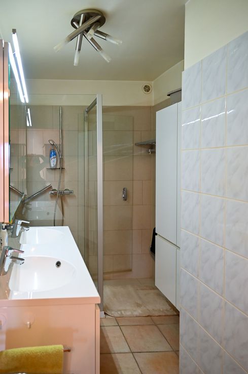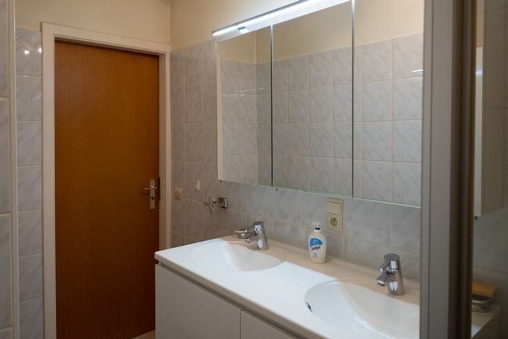In de badkamer vind je een inloopdouche en dubbele lavabo.