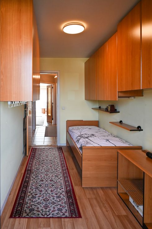 De grote slaapkamer heeft ingemaakte kasten, waardoor de ruimte maximaal benut wordt om al je spullen op te bergen en er is ook airco. De kleine slaapkamer geeft toegang tot het terras.