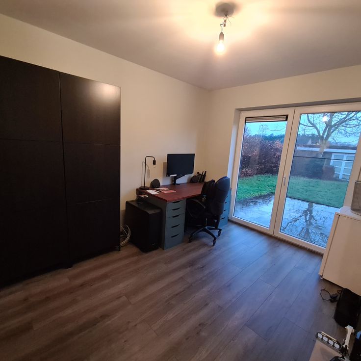 - Slaapkamer (ca 15m²) met ruimte voor een dressing en badkamer (ca 4m²) aansluitend. Deze kan ook ingericht worden als kantoorruimte.
