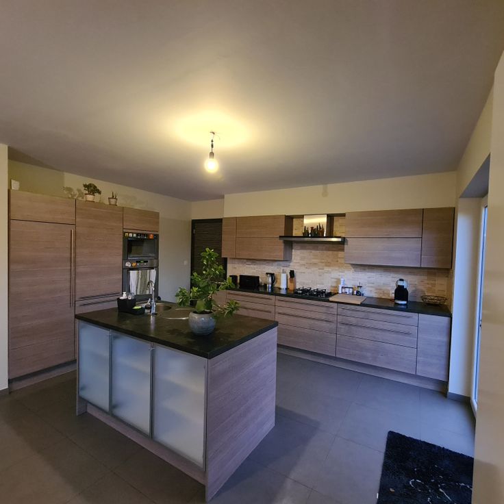 - Open keuken (ca. 14m²) is uitgerust met gasvuur, dampkap, oven, microgolf, ijskast, vaatwasmachine en spoelbak