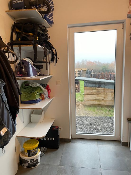 Jardin de 330 m2 entièrement clôturé avec abri de jardin. Le jardin donne vue sur des terrains agricoles. Espace jardin avec terrasse calme et agréable. Une place de parking extérieur.