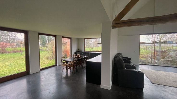 De vloeren zijn van gepolierd beton, de ramen zijn van onderhoudsvrij hout met driedubbele beglazing.