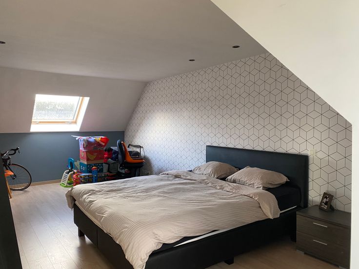 Op de 1e verdieping bevinden zich een nachthal, drie slaapkamers en een badkamer, uitgerust met een ligbad, inloopdouche, handdoekdroger en dubbel lavabomeubel. Een apart toilet maakt het geheel compleet. Via een vaste trap bereik je de zeer ruime en afgewerkte zolderkamer, die kan dienen als extra slaapkamer, bureau of hobbyruimte.