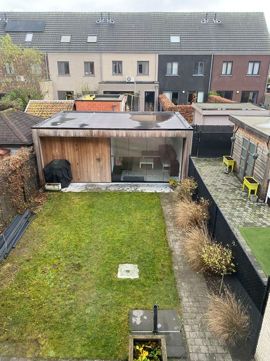 Deze recente gesloten bebouwing werd gebouwd in 2012 en is volledig instapklaar. Dankzij het EPC-label A voldoet deze woning aan de energiedoelstelling 2050. De woning beschikt over 10 zonnepanelen. De ramen van de achtergevel zijn uitgerust met screens. De slaapkamer aan de voorgevel en de zolder beschikken over rolluiken op zonne-energie.