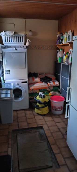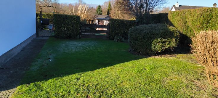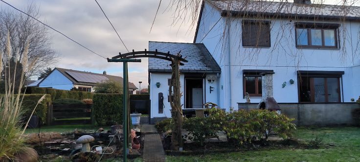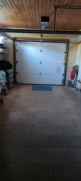 Hall d’entrée, WC séparée, living, cuisine équipée avec coin repas, buanderie, garage, entrée carrossable, jardin, terrasse.