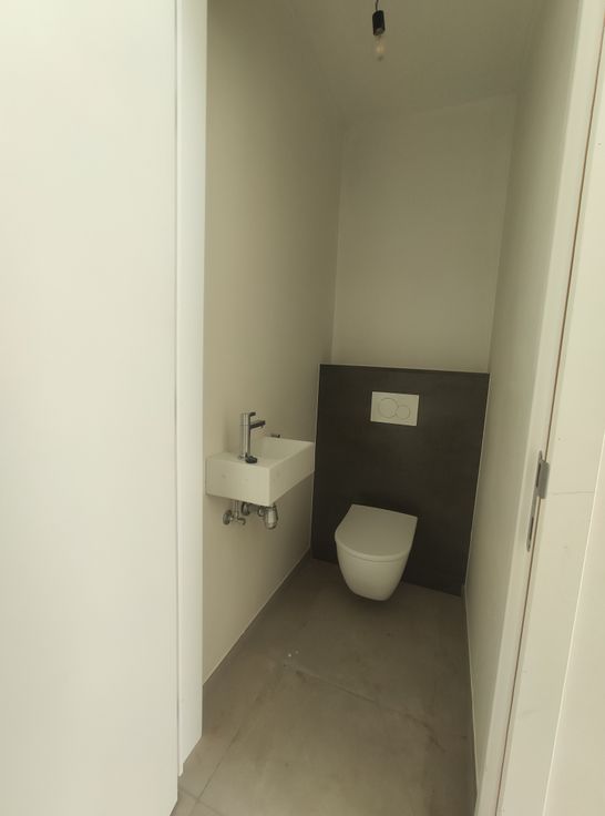 - een lichtrijke inkomhal met ingebouwde vestiairekast en apart toilet,