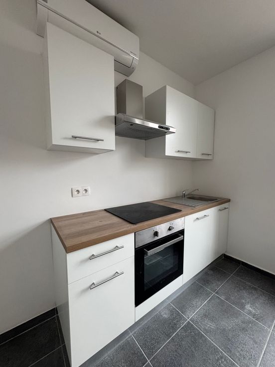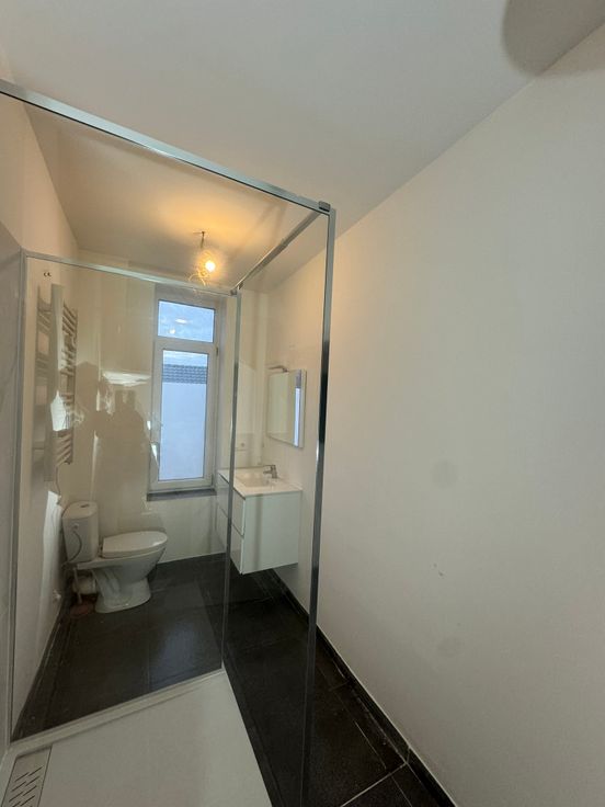 Situé au 1er étage d'une une petite copropriété calme de 5 studios, un magnifique kot entièrement rénové: première occupation!