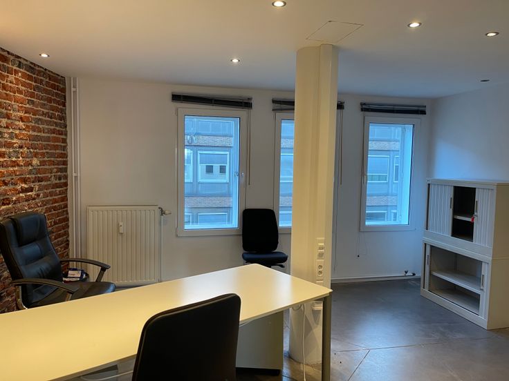 Uccle - Globe Village: Belle surface de bureaux de 110 m2 à louer au 2ème étage, aménagée/cloisonnée et modulable. Sol en béton lissé. Le tout dans un style industriel très lumineux. faibles charges communes. Possibilité de louer des surfaces supplémentaires de 201 m2 au 1er étage. Parkings disponibles à 110 €/mois. Document non contractuel. Pour tous renseignements et visites: 0475/444483.