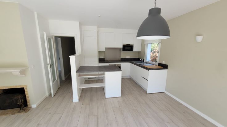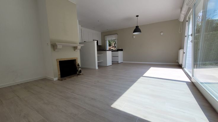 Bungalow de 110m2, sur un jardin de 8 ares SO, entièrement rénové, Beau living avec feu ouvert, cuisine américaine hyper équipée, lave vaisselle, four à pyrolyse auto nettoyant, frigo et congélateurs ,micro onde ,hotte nombreux placards coin à déjeuner nombreuses prises + prise pour tv à suspendre, 3 chambres de 12, 12 et 9 m2,stores ikea,1 salle de bains complète double évier, douche à l italienne, baignoire, 1 WC séparé avec LM, buanderie séparée avec coin repassage, local de rangement, au sol imitation parquet clair en carrelage de qualité, spots intégrés partout, parlophone ,système alarme, éclairages automatiques extérieur, jardin clôturé
