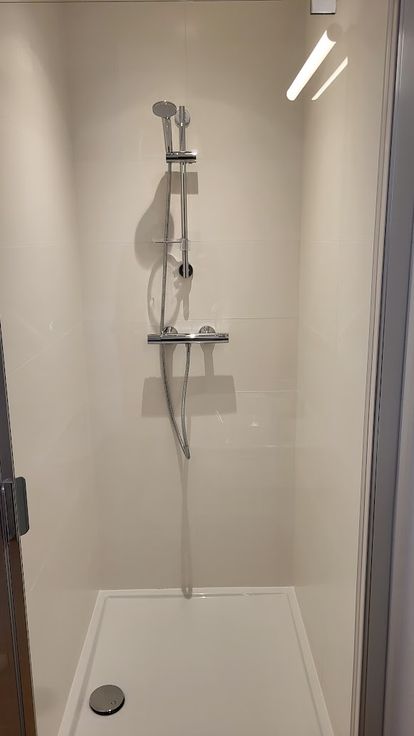 - Badkamer met ruime douche, lavabo en WC