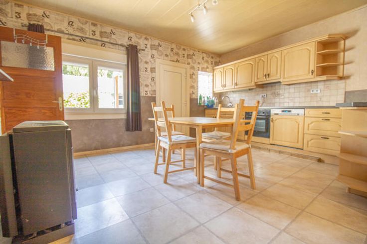 Celle-ci se compose, au rez-de-chaussée, d'un hall d'entrée donnant accès à un superbe espace séjour ( salon, salle à manger ) de +/- m² avec cuisine équipée ( four - taque - hotte - lave-vaisselle ). Au fond de la cuisine nous avons accés à la salle de bain avec WC.