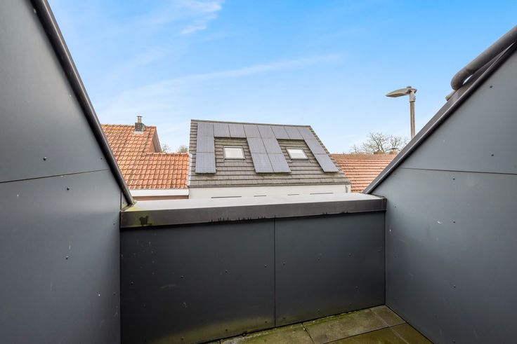 1steV: hier bevindt zich het tweede appartement (86m²). Dit appartement beschikt over een ruim terras (18m²), een living (25m²) met keuken (10m²), een badkamer (6m²) met inloopdouche, twee slaapkamers (15-14m²) en een aparte toilet (2m²).