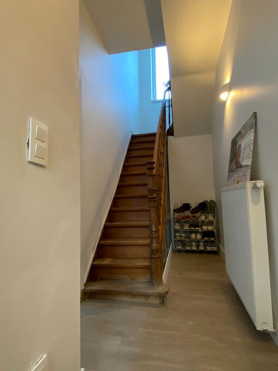 Deze grote lichtrijke rijwoning op een boogscheut van het centrum komt opnieuw vrij tegen 1 februari 2025. De inkomhal is heel ruim en lichtrijk en biedt toegang naar de extra bergruimte voor het stallen van bijvoorbeeld fietsen.
