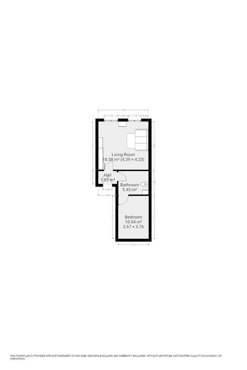 3deV: de derde verdieping herbergt het vierde appartement. Via de inkomhal (4m²) betreedt men de woonkamer (22m²) en de badkamer (5m²). Vanuit de badkamer bereikt men de slaapkamer (11m²).