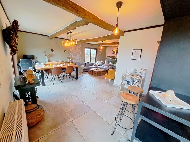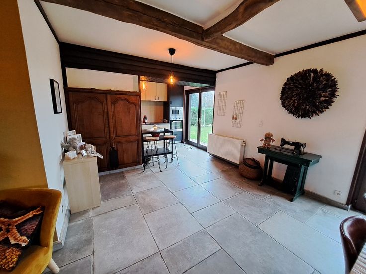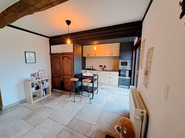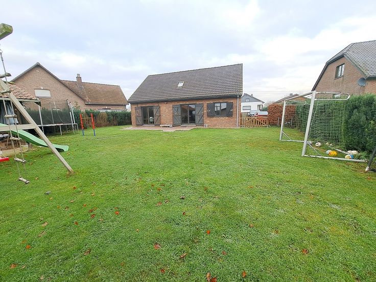 Rez ; hall d'entrée, salon, salle à manger, cuisine équipée, chambre à coucher, salle de douche, Wc séparé, garage 2 places, accès à la terrasse et jardin.