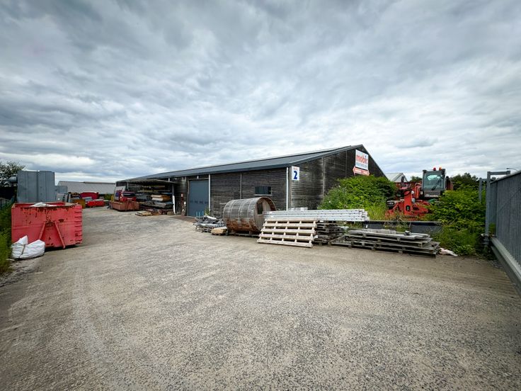 Site entièrement clôturé avec large parking et aires de manoeuvres aménagés.