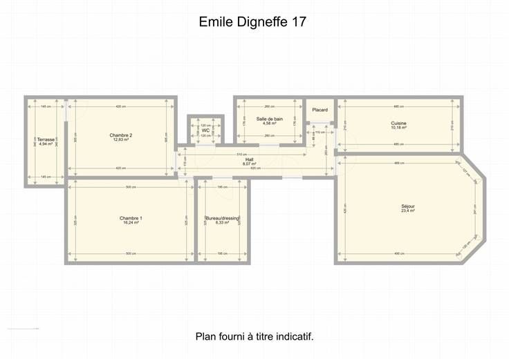 Sorry er is geen nederlandse vertaling beschikbaar. Bel appartement 2 chambres de +- 112m² situé au 3ème étage de la résidence "DIGNEFFE", il comprend : Un hall d'entrée 1.15x6.20 avec un placard, un séjour 4.20x5.75, une cuisine équipée 2.10x4.85 (évier, frigo/congel, taque vitro, hotte, lave-vaisselle, micro-onde, four électrique), une salle de bain 1.75x2.55 (baignoire, évier, embranchement machine), un wc séparer, deux chambres 4.20x3.05 avec terrasse 1.40x3.40 et 5.00x3.15 avec bureau/dressing 3.15x1.95, une cave et un emplacement de parking compris ! CHARGES : Communes : une provision de 200 €/mois (communs, eau, chauffage). Privatives (via abonnement personnel) : électricité, Tv/Internet/Téléphone. DIVERS : Parquet dans le séjour et les chambres, carrelage dans le reste de l'appartement. Chauffage central au gaz, châssis PVC double vitrage. Parlophone. Bel appartement idéalement situé proche de nombreuses écoles et des transports en communs. Libre d'occupation le 01/03/2025 A VISITER SANS TARDER !