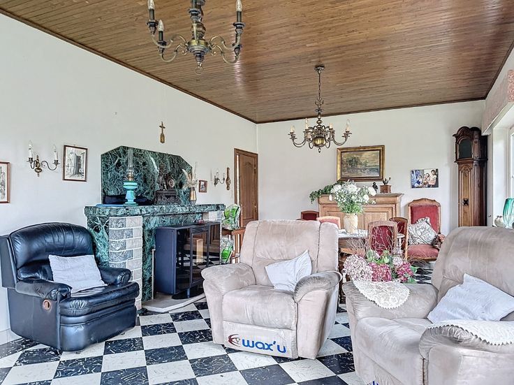 ERA LABELIMMO presenteert dit charmante huis met 4 slaapkamers en een bewoonbare oppervlakte van +128m², gelegen in een rustige straat in Chapon-Seraing. Dichtbij alle voorzieningen is het ideaal gelegen in een groene omgeving. Het is mogelijk om tot 5 slaapkamers te hebben. Dankzij de doucheruimte en de ruimte op de begane grond kun je het ook gebruiken als een bungalow met 2 slaapkamers! Renovatiewerkzaamheden te plannen, groot potentieel te benutten dankzij de grote kelder/garage van +90m²! Het huis bestaat uit: op de begane grond, inkomhal, slaapkamer en bureau van 14m², doucheruimte, toilet, grote woonkamer en keuken van 31m². Op de eerste verdieping, 2 ruime slaapkamers (20 en 12m²) en een kantoor/kleedkamer.  De kelder bevat een garage en kelders, met een totale oppervlakte van 90m². Het beboste terrein van 1.497m² garandeert je privacy. Centrale verwarming op stookolie met pelletkachel in de woonkamer, recente PVC ramen met dubbel en driedubbel glas, elektriciteit niet conform - R.C. 934 €. EPB: G (693 kWh/m².an) n°20241202015466. Bieden vanaf €349.000 onder voorbehoud van aanvaarding door de eigenaar. Niet-contractuele informatie uitsluitend ter informatie. Deze advertentie vormt geen aanbod.