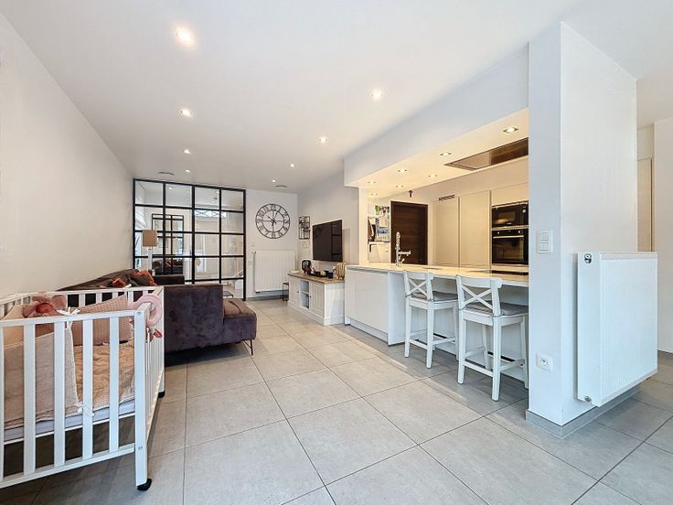 La surface du terrain est de 231 m2 et la surface habitable est de ± 190 m2. Elle est composée d'un rez-de-chaussée de ± 78 m2, d'une terrasse de ± 30 m2, d'un premier étage de ± 78m2 et d'un grenier de ± 35 m2.