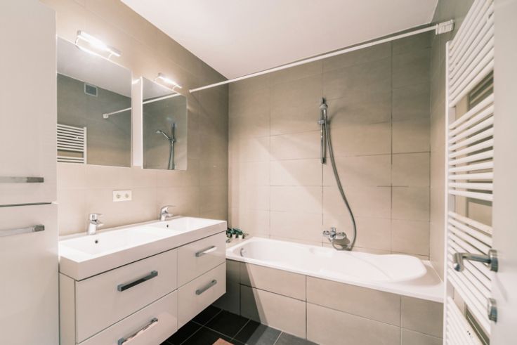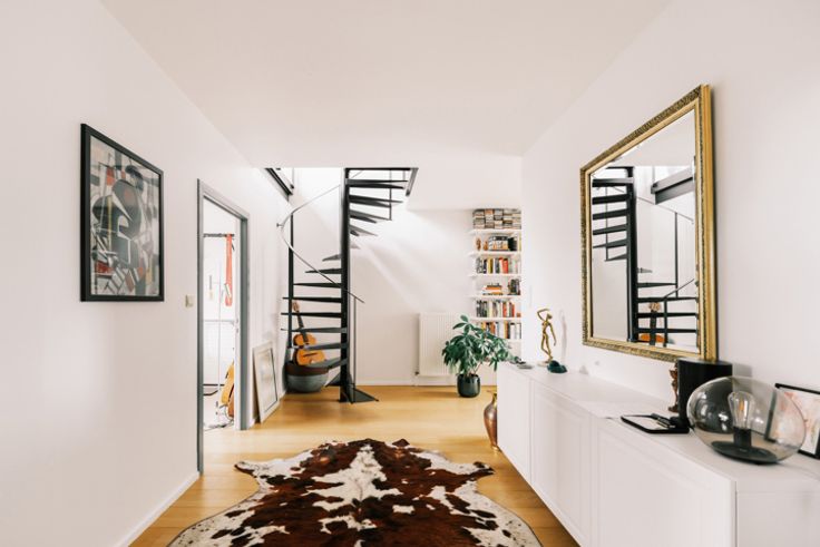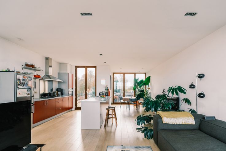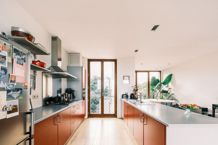 Op wandelafstand van winkels en het gekende witte kasteel van het Rivierenhof met zijn grote vijver, kinderboerderij en Openluchttheater, dicht bij het openbaar vervoer en op slechts vijftien minuten fietsen van de stad. Een unieke plek om tot rust te komen! In deze prachtig gerenoveerde fabriek met authentieke elementen en gedeelde binnentuin is het heerlijk thuiskomen in een oase van rust. B-architecten stond in voor de architecturale renovatie, en dat merk je. De trap brengt je naar het ruime duplexappartement op de tweede verdieping. Het ruimtelijke gevoel begint al meteen in de inkomhal, met achteraan in de gang de eerste, mooie slaapkamer, waar je van een geweldige lichtinval geniet. Overal ligt dezelfde elegante vloer in massief hout. Moderne badkamer met dubbele wastafel en ligbad. Verder vind je op deze verdieping nog twee slaapkamers (waarvan één nu dressing), handige plaats voor wasmachine en droogkast, berging en een klein terras. De wenteltrap leidt naar de zonovergoten woonkamer met ruime zitplaats, eethoek en open keuken met alle toestellen die je nodig hebt. Op deze verdieping heb je twee royale terrassen: één grenst vooraan aan de woonkamer, het andere aan de eethoek achteraan, met uitzicht op de grote binnentuin. Zowel in de woonkamer als op deze terrassen ervaar je totale privacy – een zaligheid – en in de zomer is het ook gezellig genieten in het gemeenschappelijke stukje groen. Ook handig: in het gebouw heb je nog plaats voor fietsen en een kelder.