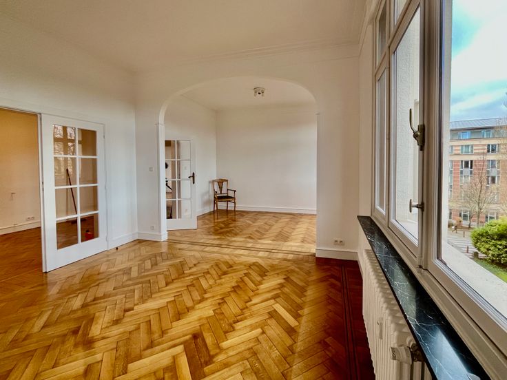 Gelegen op de 3e verdieping van een geklasseerd gebouw uit 1934, combineert dit volledig gerenoveerde appartement van ± 100 m² de charme van historische architectuur met modern comfort.