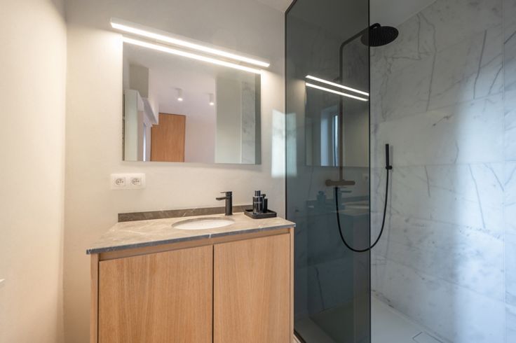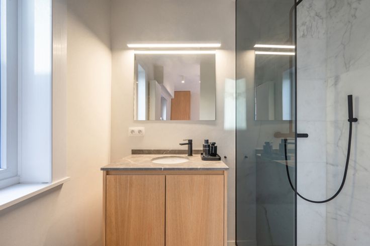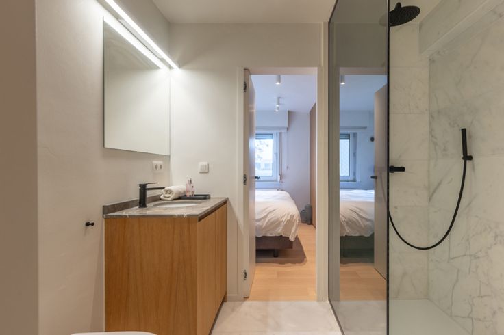 De tweede slaapkamer geeft ook de connectie naar deze badkamer. Master bedroom met inbouwkasten met haar eigen douchekamer met inloopdouche en toilet.
