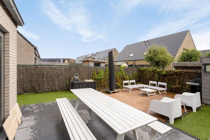 Energiezuinige, halfopen bebouwing, uitstekend gelegen nabij winkels en scholen. Ook sportaccommodaties liggen in de onmiddellijke omgeving. Via de lichtrijke inkomhal, voorzien van gastentoilet, betreedt men de leefruimte die ingericht werd met een gezellige zithoek met zicht op de tuin, een eetplaats en een bureelruimte. De volledig uitgeruste keuken is voorzien van een aparte bergruimte. Heel handig is de directe toegang tot deze bergruimte via de voorzijde van de woning. Op de eerste verdieping bevinden zich de master bedroom, een slaapkamer en een badkamer voorzien van inloopdouche. Het toilet op de eerste verdieping is gescheiden van de badkamer. Een vaste trap naar de bovenste verdieping brengt je in de grootste slaapkamer, mogelijks op te splitsen in 2 slaapkamers. Airco is er voorzien. De woning is aan de zijkant voorzien van een toegang tot de tuin zodat fietsen veilig weggeplaatst kunnen worden. Zonnepanelen, kunstgras (weinig onderhoud), een zongericht terras en een tuinhuis zijn een extra troef. Voor de woning is er parkeerplaats voorzien voor 3 tot 4 auto's. Ontdek deze gezellige woning in een kindvriendelijke rustig gelegen woonwijk. Meer info of een bezoek inplannen? Contacteer DRL VASTGOED, 050 65 95 95 of info@drlvastgoed.be   Renovatieplicht: nee