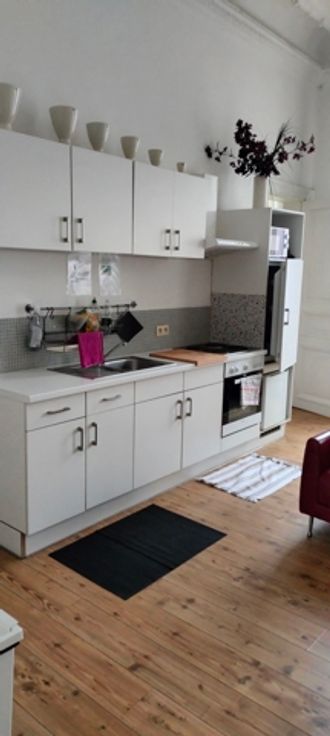 Bel appartement meublé de +/-80m² situé au 1er étage d'une maison de Maître comprenant petit hall d'entrée avec toilettes, séjour avec coin cuisine équipée, 1 grande chambre et salle de douche. Loyer : 750 € + 75 € de provisions pour l'entretien des communs et le chauffage . PEB C n° 20230530029404 Libre de suite Possibilité de loué non meublé
