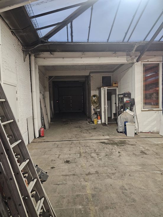 Emplacement sécuriser Pou 3 camionnettes H2 Hauteur de porte 315 /largeur 300 zone de stockage /travail Bureau à front de rue 10 M2 Douche et wc Cuisine chauffage gaz Travaux en cours , disponible pour le 01/03 /2025