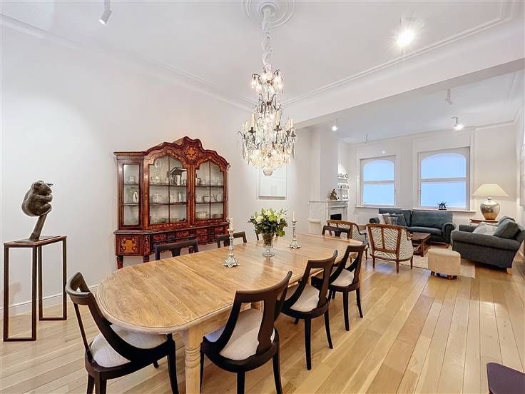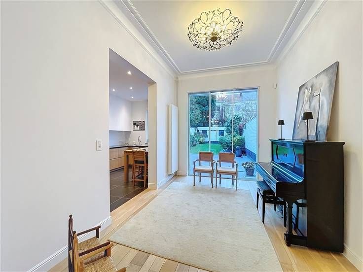 Située non loin de Montgomery et à proximité du Collège Saint-Michel, dans une rue calme et verdoyante, magnifique maison de maître de ± 415m² bruts (comprenant cave et grenier) entièrement rénovée avec un grand jardin. Composition : RDC : vaste hall d’entrée en marbre, spacieux et lumineux séjour et salle à manger de ± 60m² en parquet massif et cheminée, cuisine semi-ouverte et super-équipée, vestiaire, wc séparé. 1ER : hall de nuit, spacieuse suite parentale de ± 36m² avec dressing et salle de bains attenante, grande chambre de ± 19m², salle de douche, wc séparé. 2E : hall de nuit, 3 grandes chambres de ± 16, 15 et 10m² dont une donnant accès à une superbe terrasse de ± 25m². Grenier aménagé. SOUS-SOL : grandes caves, chaufferie et espace technique. Détail : maison de maître de 1929 entièrement rénovée avec gout et matériaux de qualités, parquet massif, PEB D, électricité conforme, panneaux photovoltaïques, porte blindée électrique, système d’alarme, adoucisseur d'eau, citerne d'eau de pluie. Possibilité de louer un garage à proximité immédiate. Idéalement situé à proximité de toutes commodités : nombreux commerces, restaurants, parcs, écoles,... Transports en commun : stations Pétillon et Thieffry, tram 7, 25, 39 et 44. Annonce et indications non contractuelles, sous réserve de modifications – Info : est@macnash.com - Tel : 02 779 99 99 - ID 272307