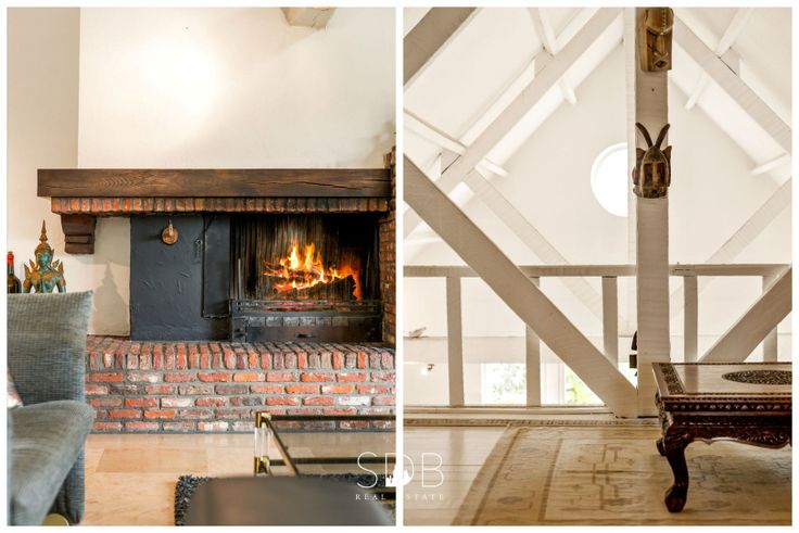 De grote glaspartijen laten een maximaal aan licht, deze landelijke ruimtes belichten. Een authentieke open haard geeft deze leefruimte nog een extra charme.