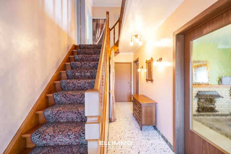 Gezellige goed onderhouden eengezinswoning van 170m² uit de jaren 70 met 3 slaapkamers en dit op enkele minuten wandelen van het centrum van Hoeselt (fusiegemeente Bilzen-Hoeselt). Deze halfopen woning met inpandige garage (elektrische poort) beschikt over een volledig omheinde zuid georiënteerde tuin en is gelegen in een zeer rustige, groene straat. Bakkers, slager, apotheek, bank, school, kinderopvang, eetgelegenheden... zijn allemaal op wandelafstand! Ook supermarkten en het op- en afrittencomplex E313 liggen slechts enkele minuten verwijderd. Deze charmante woning dateert van bouwjaar 1970, maar werd altijd zeer netjes onderhouden. In 2015 werd een nieuwe mazoutketel geïnstalleerd, deze bevindt zich in de garage. In 2018 werden PVC ramen met dubbele beglazing geplaatst; alle ramen zijn tevens van rolluiken voorzien. In 2022 werd het dak gereinigd en werden de dakgoten vernieuwd in zink. INDELING GELIJKVLOERS Inkomhal met toilet en vestiaire, rechts de toegang naar de gezellige living met woonkamer en aansluitend een ruime bijplaats. Verder vinden we op het gelijkvloers een geïnstalleerde keuken met zicht op de tuin, de garage met automatische poort, een kleine veranda, enkele stallingen en een ruim tuinhuis. VERDIEPING 1 De trap in de hal leidt ons naar de 1ste verdieping. De nachthal biedt toegang tot de 3 ruime slaapkamers, 2 kleine bergplekjes en de badkamer die voorzien is van een lavabomeubel en ligbad. ZOLDER Er is ook nog een ruime zolder onder het dakgebinte