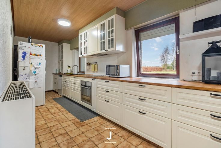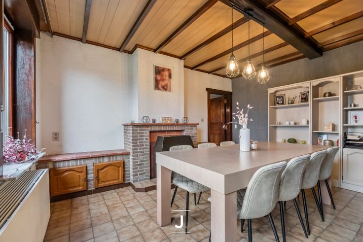 Bij binnenkomst wordt u verwelkomd in een ruime en uitnodigende inkomhal die toegang biedt tot de belangrijkste leefruimtes. De eetkamer en woonkamer stralen warmte en gezelligheid uit, mede dankzij een knisperend haardvuur, ideaal voor ontspanning en familiebijeenkomsten. De recent vernieuwde keuken is volledig uitgerust met moderne toestellen, een ideale plek voor kookliefhebbers. Aangrenzend aan de keuken bevindt zich een recent gerenoveerde badkamer die van alle moderne gemakken is voorzien.