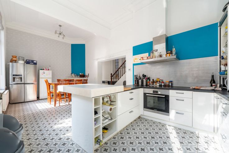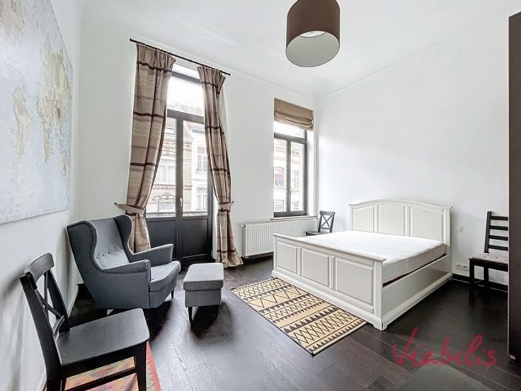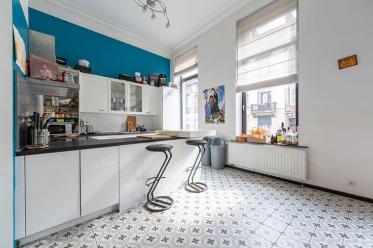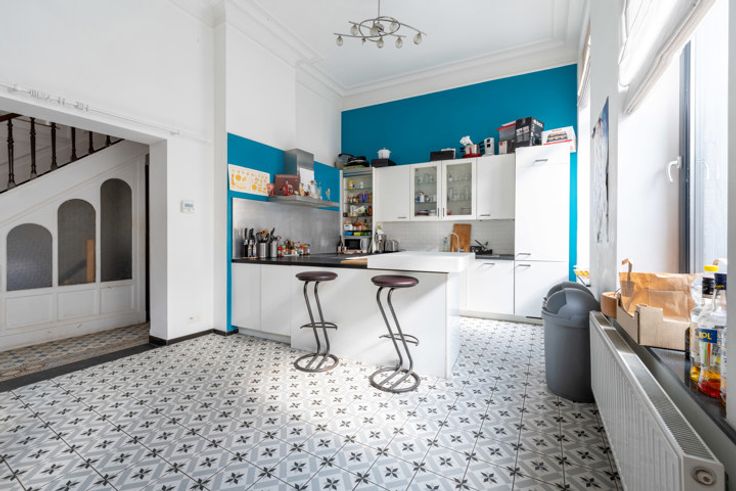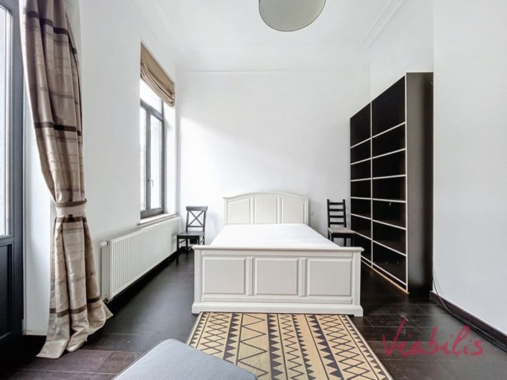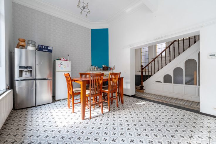 SAINT-GILLES - AVENUE DU ROI NEIGHBOURHOOD - Schitterend herenhuis (10 m voorgevel) als volgt samengesteld: Voorbouw: grote eetkamer met open ingerichte keuken, 4 slaapkamers, 3 badkamers met douche, een extra slaapkamer in de kelder en een andere onder het dak. Binnenplaats van ongeveer 20 m². Grote kelders onder het hele huis. Achterbouw: momenteel een grote kamer, woonkamer met toegang tot de binnenplaats, en een slaapkamer met doucheruimte op de eerste verdieping. De twee gebouwen zijn verbonden door een gang met een bow-window, die charme en lichtinval biedt. In totaal 7 slaapkamers. Ideaal voor een verhuurinvestering of een groot gezin. PEB F - Twee individuele gasgestookte boilers - Dubbele beglazing, PVC en houten kozijnen. Huis in goede staat, klaar om nieuwe eigenaren te verwelkomen!