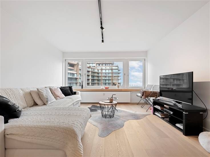 Dit prachtig gerenoveerd 1-slaapkamer appartement kunnen we terugvinden op een zeer centrale ligging alsook met zicht op de zeedijk. Het appartement werd volledig gerenoveerd en beschikt over een totale woonoppervlakte van 71m². De knappe afwerking van het geheel, met de nodige aandacht voor stijl en goede materiaalkeuze, valt reeds op bij het betreden van het appartement. We ondervinden een warme en cosy uitstraling. De eigenaar heeft geopteerd voor een smaakvolle afwerking. In de leefruimte heerst er een gezellige sfeer door de combinatie van zowel warme als koude elementen. De leefruimte is voorzien van veel lichtinval dankzij het grote raampartij en dit draagt bij tot een leuke combinatie van licht en ruimte. Hierdoor is het in de woonkamer een plezier om te vertoeven. De knappe keuken met eethoek is hier voorzien van voldoende opbergkasten en uitgerust met de nodige toestellen om een lekkere maaltijd te bereiden. Verder beschikt het appartement over een mooie slaapkamer met ingebouwde kasten, een volledig uitgeruste badkamer, een apart toilet en een terras achteraan het appartement. Bovendien is er hier een mogelijkheid tot het aankopen van een gesloten garagebox aan €120.000. Hebben wij uw interesse kunnen wekken voor dit prachtig appartement? Bel ons op het nummer 011/98.88.98 of via info@dewoonmakers.be De vermelde oppervlaktes zijn indicatief. De Woonmakers kan niet verantwoordelijk gesteld worden voor d