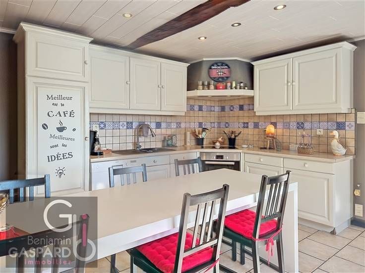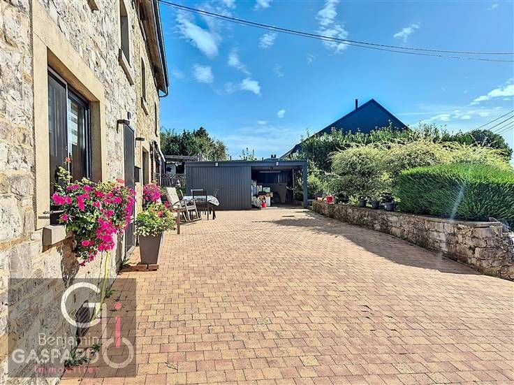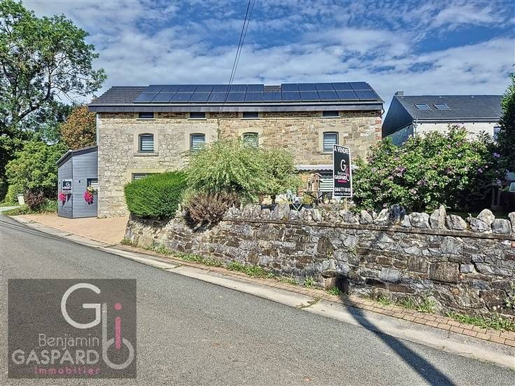 Sorry er is geen nederlandse vertaling beschikbaar. DURBUY: bâtiment de caractère ayant fait l'objet d'une rénovation récente situé à Grand-Houmart sur et avec terrain de 600 m² se composant comme suit: deux garages indépendants, hall d'entrée, cuisine, salon/salle à manger, arrière cuisine, buanderie/chaufferie, wc indépendant, hall de nuit, 3 chambres, salle de douche avec wc et un grenier aménageable. Cette bâtisse se veut tout à fait polyvalent pouvant accueillir une famille tout comme une seconde résidence et bénéficie d'une nouvelle toiture isolée datant de plus ou moins 5 ans, de châssis double vitrage pvc de la marque schucco également il y a 5 ans, une installation photovoltaïque de 6.000 WC exposée pratiquement plein sud! Chauffage central au mazout et une production d'eau chaude par un boiler thermo-dynamique de 270 litres datant lui de plus ou moins 2014. Prévoir petit budget pour remettre l'électricité en conformité. Possibilité selon votre situation de bénéficier du nouveau régime d'enregistrement à 3% sur la totalité du prix! A visiter sans tarder!