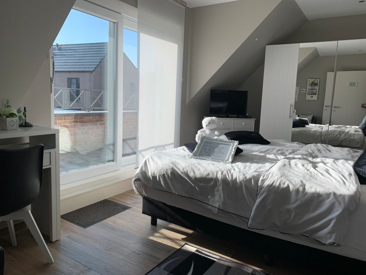Via de ruime traphal, bereiken we de eerste verdieping. Hier bevinden zich drie ruime slaapkamers, waarvan één slaapkamer met prachtig dakterras + twee badkamers.