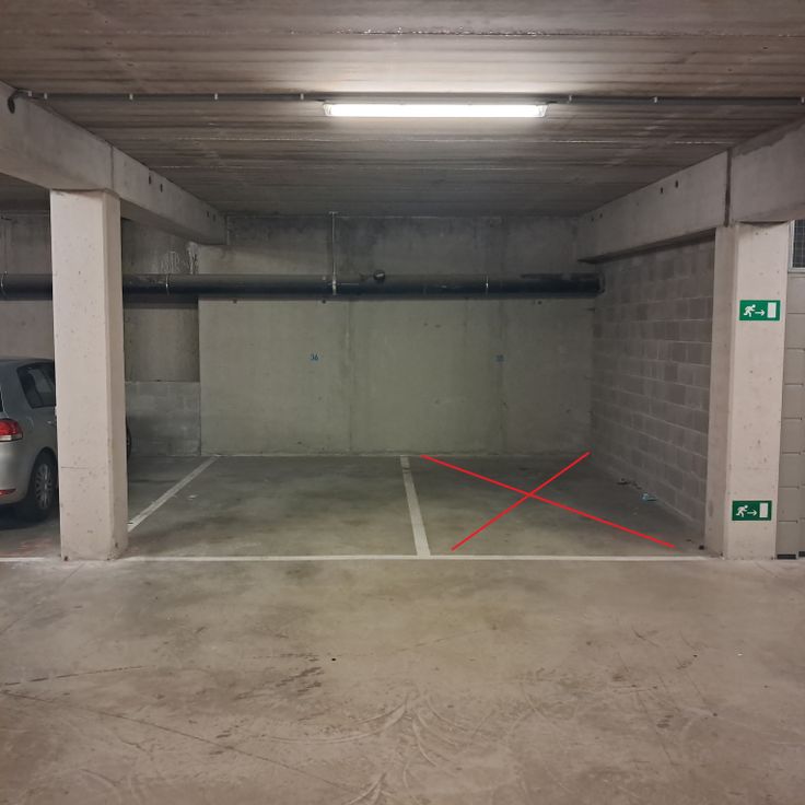 Place de parking intérieure à louer idéalement accessible et située dans le complexe commercial situé à l’entrée de Grez-Doiceau (ex supermarché Match - Comarché depuis peu).