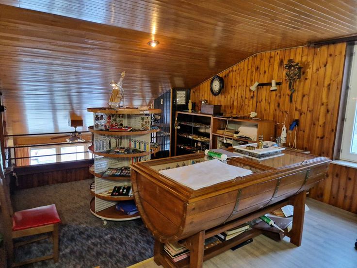 Au rez-de-chaussée : magasin, bureau, réserves, WC, salle de douche, vaste atelier.